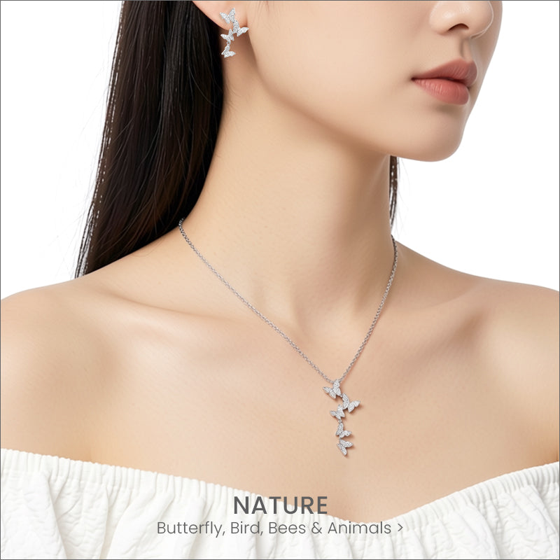 Butterfly Mother Of Pearl & Cubic Zirconia Necklace